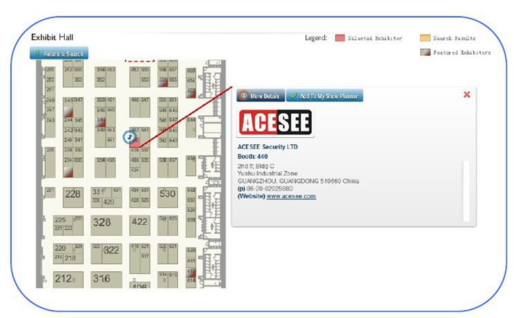 | 歡迎您來參觀美東安防展440號展位,測試新型模擬、網(wǎng)絡攝像機和硬盤錄像機解決方案,感受獨特的工業(yè)外殼設計,當然也可以跟我們洽談有關未來的合作意向。如果您有什么疑問,可以通過電子郵箱聯(lián)系我們info@acesee.com |