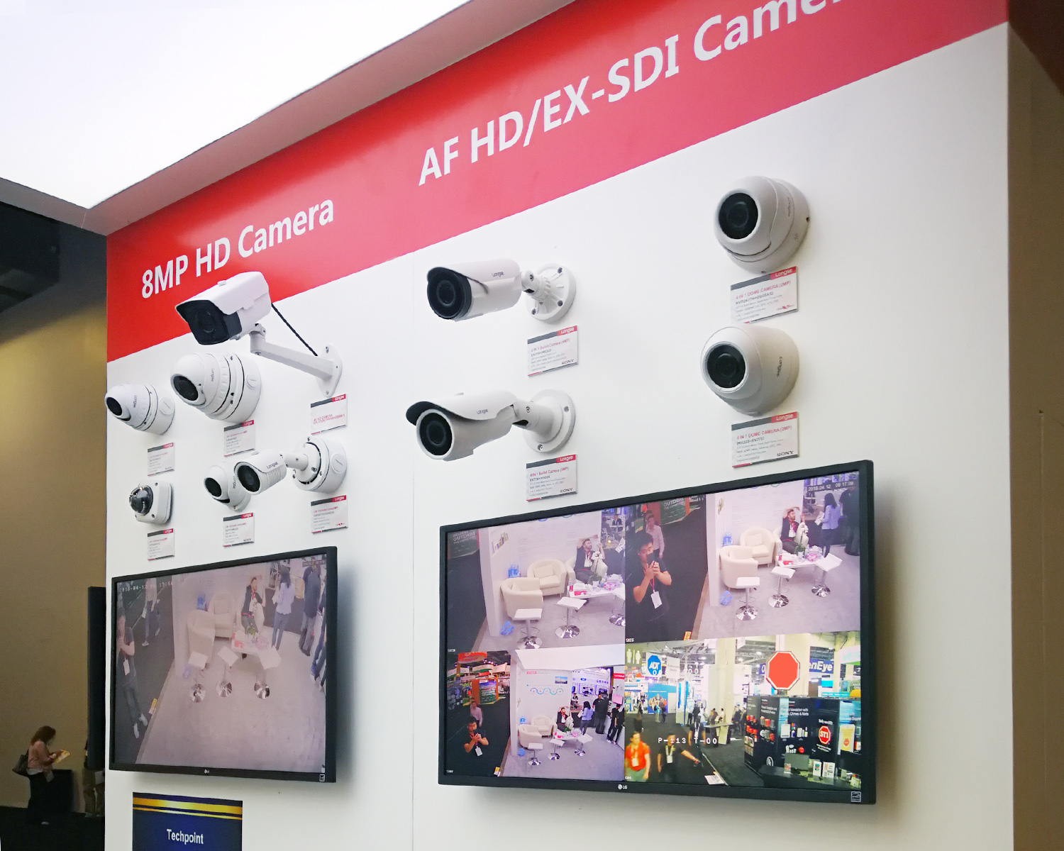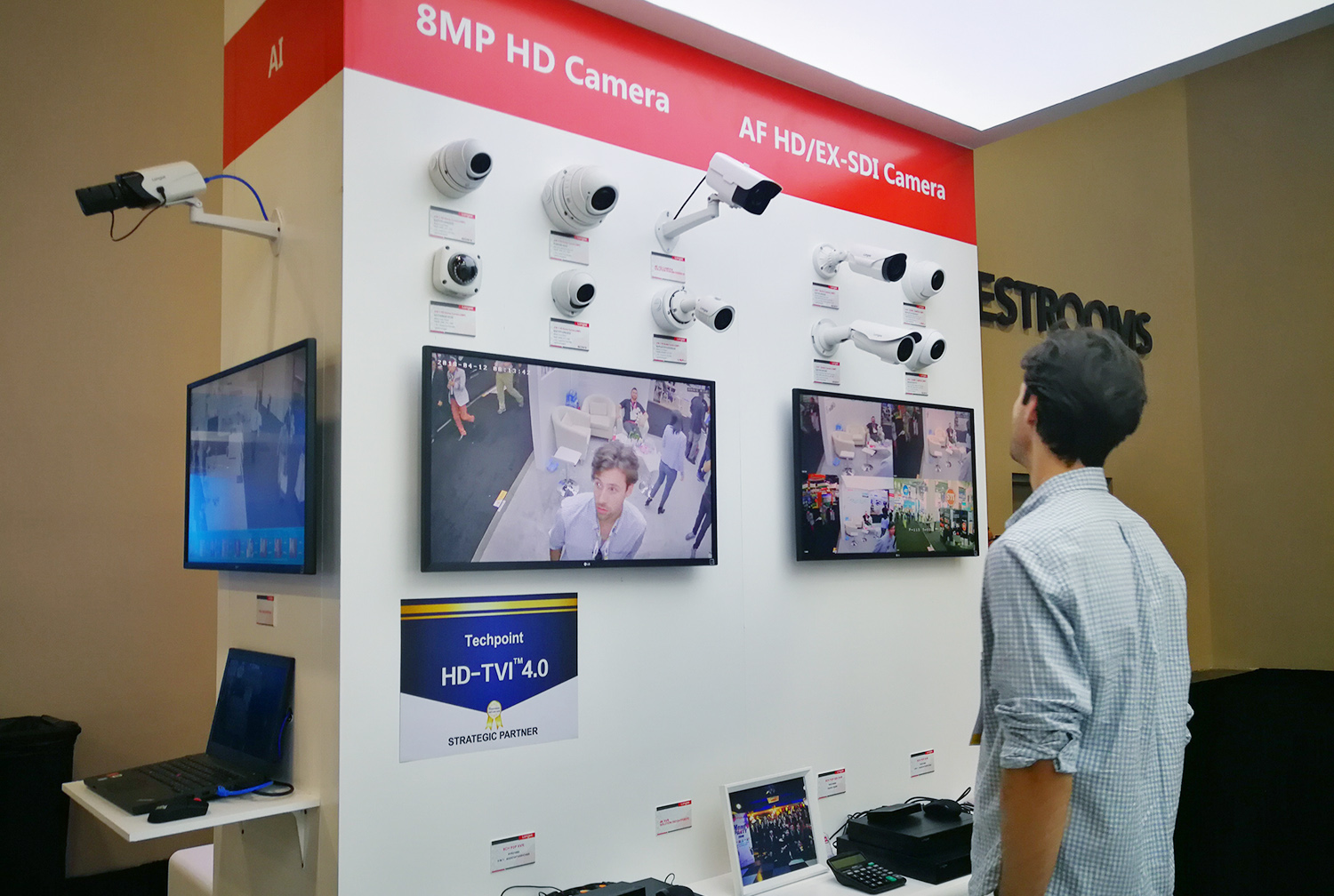 紅色靚麗的展臺(tái),給攝像機(jī)增添了不少活力。在該展臺(tái)上,長(zhǎng)視科技向國(guó)際買家展示了多款熱門的同軸高清系列產(chǎn)品,包括槍型機(jī)、半球機(jī)。透過顯示屏,客戶可近距離觀看并體驗(yàn)各類攝像機(jī)的成像效果,直觀感受高清、紅外夜視效果,感受攝像機(jī)的魅力所在,選定最佳的解決方案。
