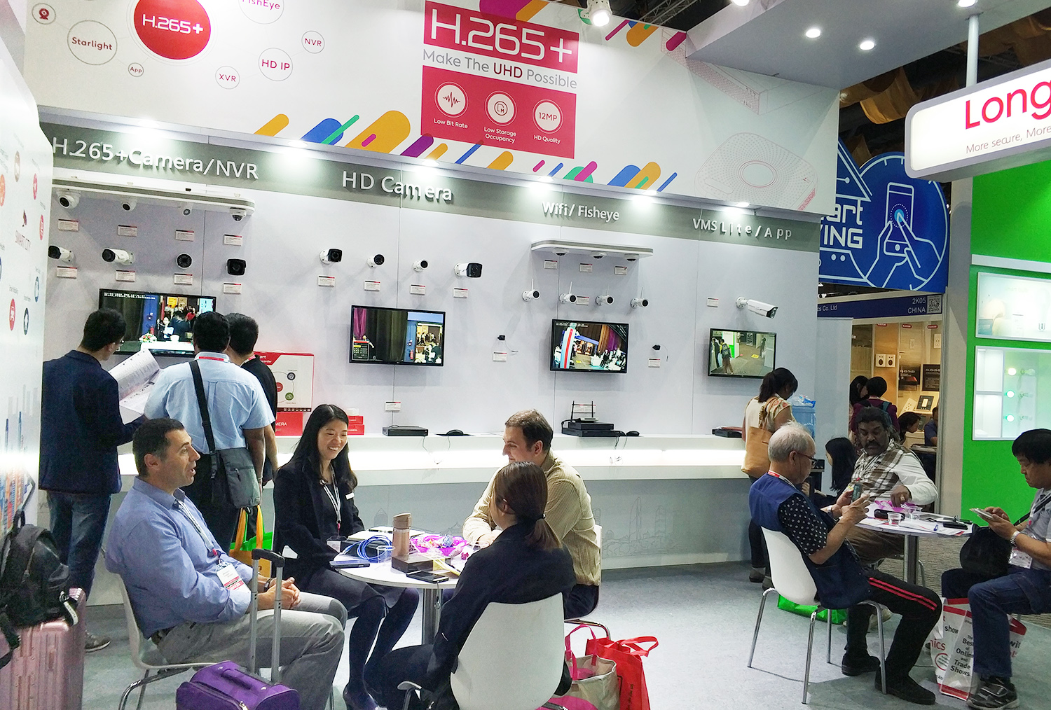 在為期四天的展會(huì)中,長視科技透過該平臺(tái),全方位展示了物聯(lián)網(wǎng)的解決方案,尤其H.265+Camera / NVR, Wifi套裝和魚眼,它們成為了展會(huì)熱點(diǎn)。