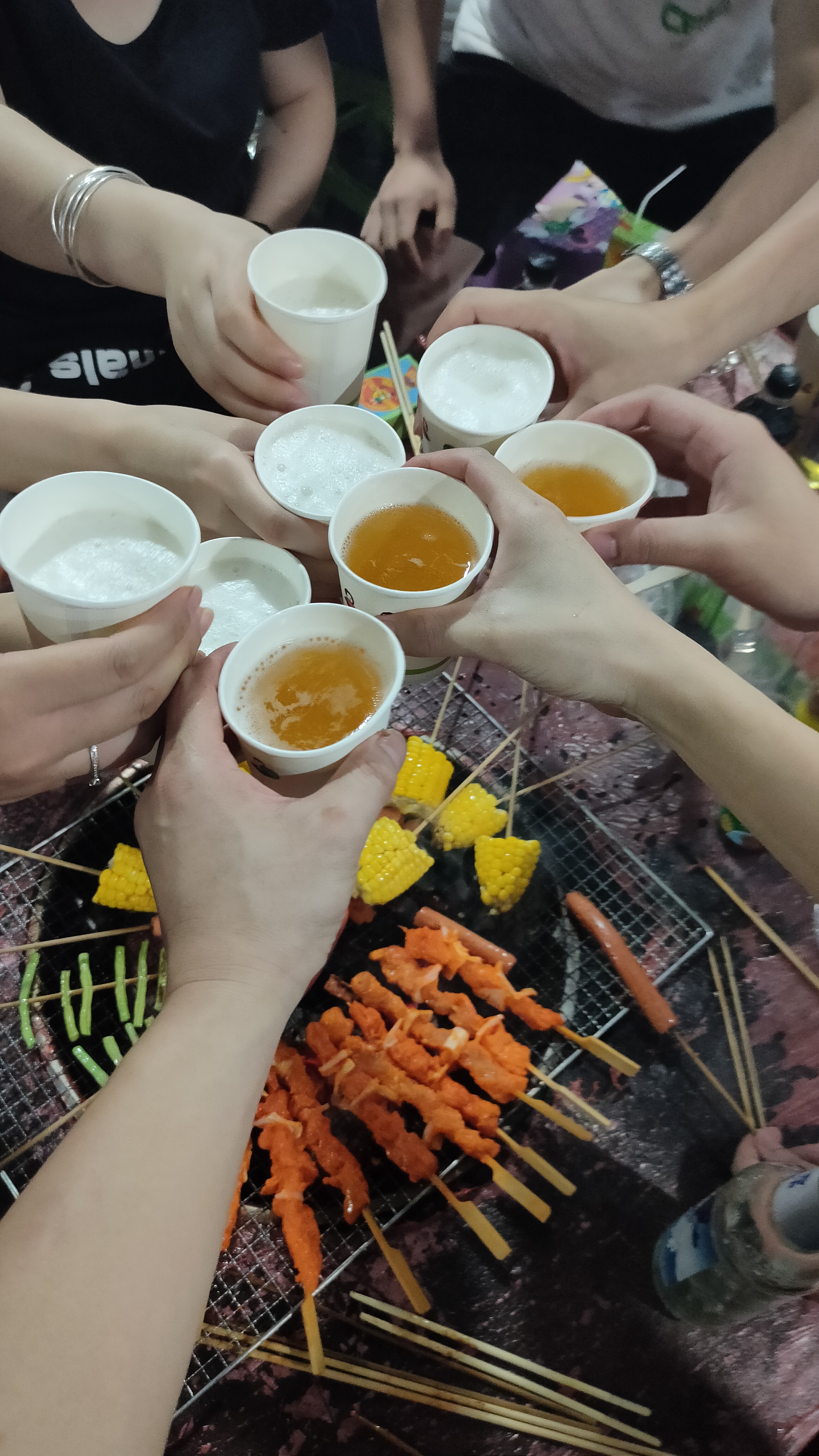 晚上6點,大家集合燒烤,在美味佳肴中,推杯換盞,相互交流情感。