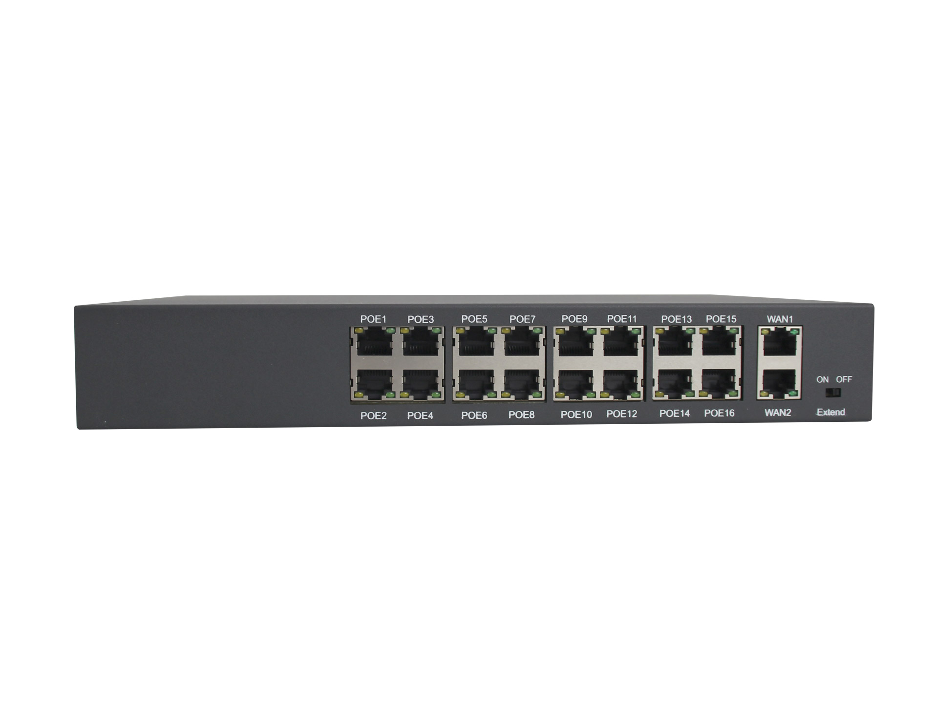 | 網(wǎng)絡(luò)連接器 | 網(wǎng)絡(luò)端口 | 1~16 port: :10/100Mbps PoE Ethernet port WAN1/WAN2 port:10/100/1000Mbps |