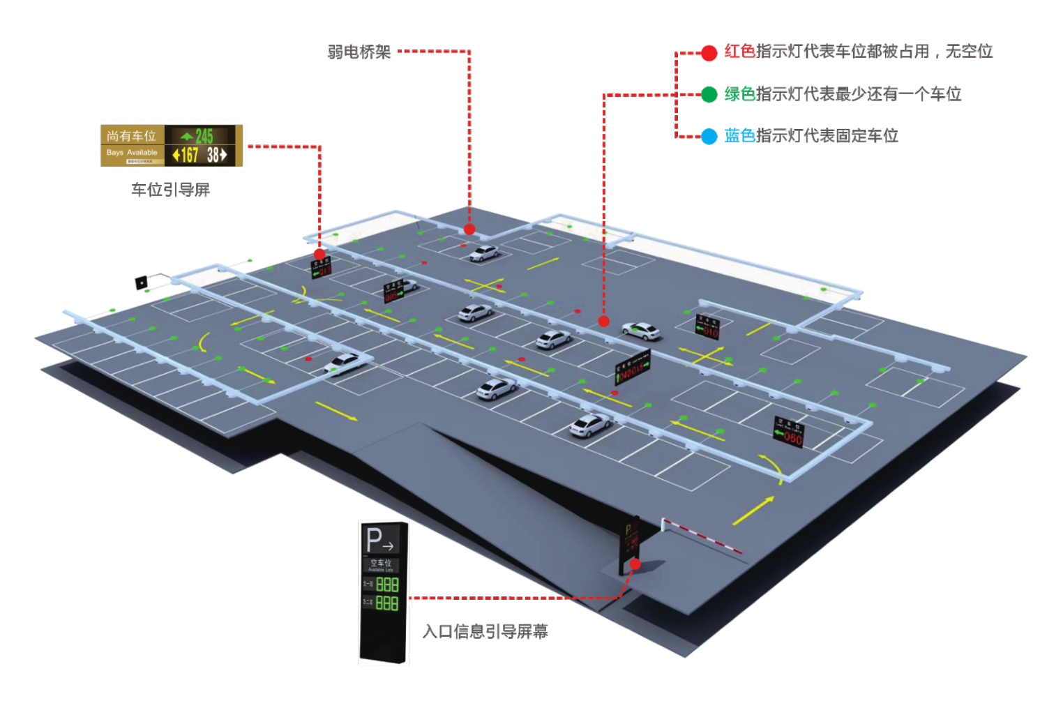 智慧車位引導(dǎo)與尋車系統(tǒng)是將機(jī)械、電子計(jì)算機(jī)、自控設(shè)備、智能算法技術(shù)有機(jī)的結(jié)合起來,可實(shí)現(xiàn)車輛出入管理、自動計(jì)費(fèi)存儲數(shù)據(jù)、車位引導(dǎo)與反向?qū)ぼ嚨裙δ堋1鞠到y(tǒng)提高了停車場的信息化、智能化管理水平,給車主提供一種更安全、舒適、方便、快捷和開放的環(huán)境,實(shí)現(xiàn)停車場運(yùn)行的高效化、節(jié)能化、環(huán)保化,降低管理員成本、節(jié)省停車時(shí)間,使停車場形象更加完美。
